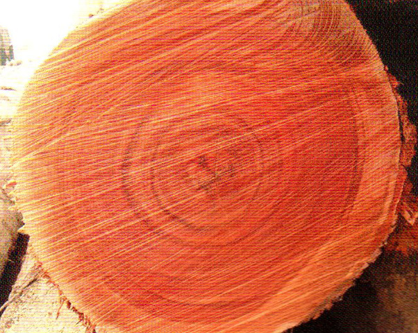 心邊材區(qū)別略明顯。心材深紅褐色至暗紅褐色略帶紫、具黑色細(xì)條紋,久則成銹褐色。邊材色稍淺、生長(zhǎng)輪不明顯。